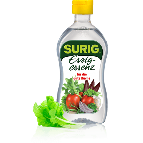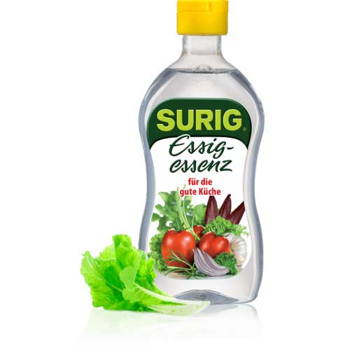 Mit dem natürlich sauren Geschmack hat SURIG Essigessenz einen festen Platz in vielen Küchen. SURIG eignet sich vor allem für Salatdressings, Saucen und deftige Suppen, ist aber auch als echter Klassiker für leckere Feinschmecker-Rezepte bekannt – 400 g Flasche