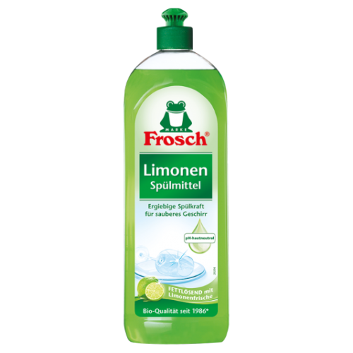 Das Frosch Limonen Spülmittel entfernt dank seiner Rezeptur mit Limonenfrische auf kraftvolle Weise Fett und Schmutz und reinigt das Geschirr glänzend sauber. Das Frosch Limonen Spülmittel ist pH-hautneutral, dermatologisch getestet und hinterlässt einen angenehm frischen Limonenduft – Flasche mit 750 ml