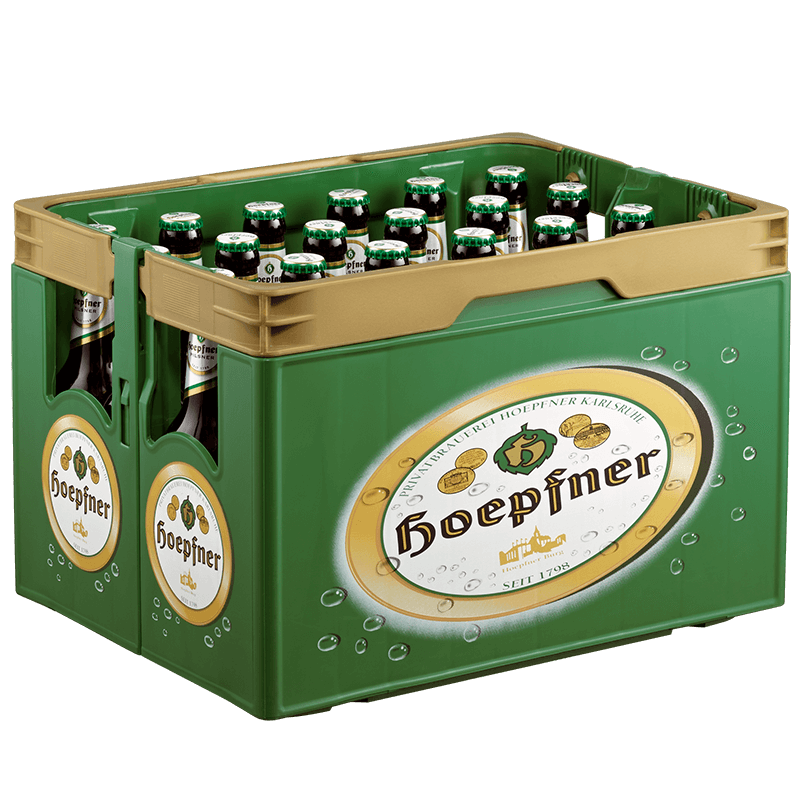 Gönnen Sie sich ein Geschmackserlebnis für Ihren Gaumen: Das himmlisch herbe Hoepfner Pilsner! Gut gekühlt durch die Kehle rinnen lassen und sich beim Genießen in geselliger Atmosphäre angeregt unterhalten – 24 Flaschen mit  0,33 Liter (Glas)- Pfand netto 2,87 Euro
