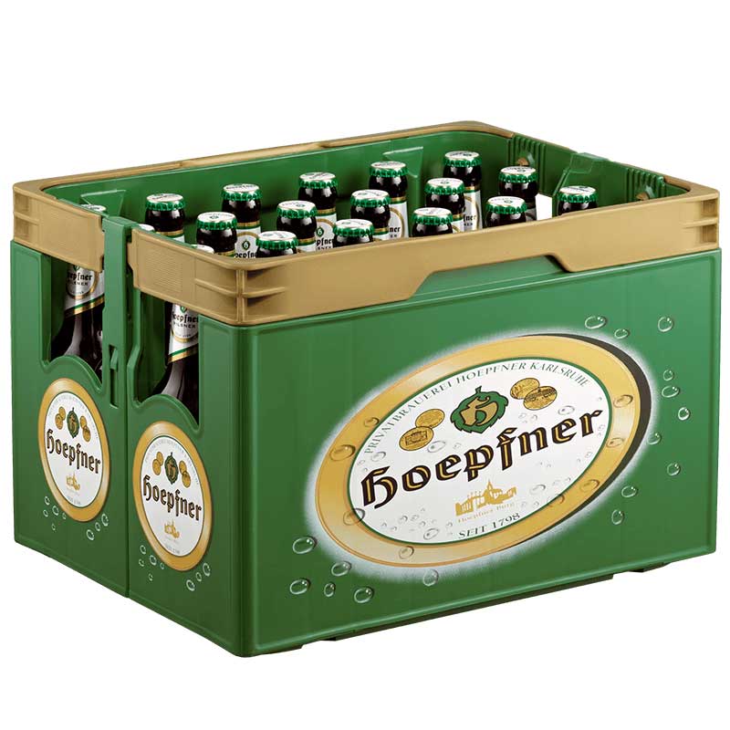 Gönnen Sie sich ein Geschmackserlebnis für Ihren Gaumen: Das himmlisch herbe Hoepfner Pilsner! Gut gekühlt durch die Kehle rinnen lassen und sich beim Genießen in geselliger Atmosphäre angeregt unterhalten – 24 Flaschen mit 0,33 Liter (Glas)- Pfand netto 2,87 Euro