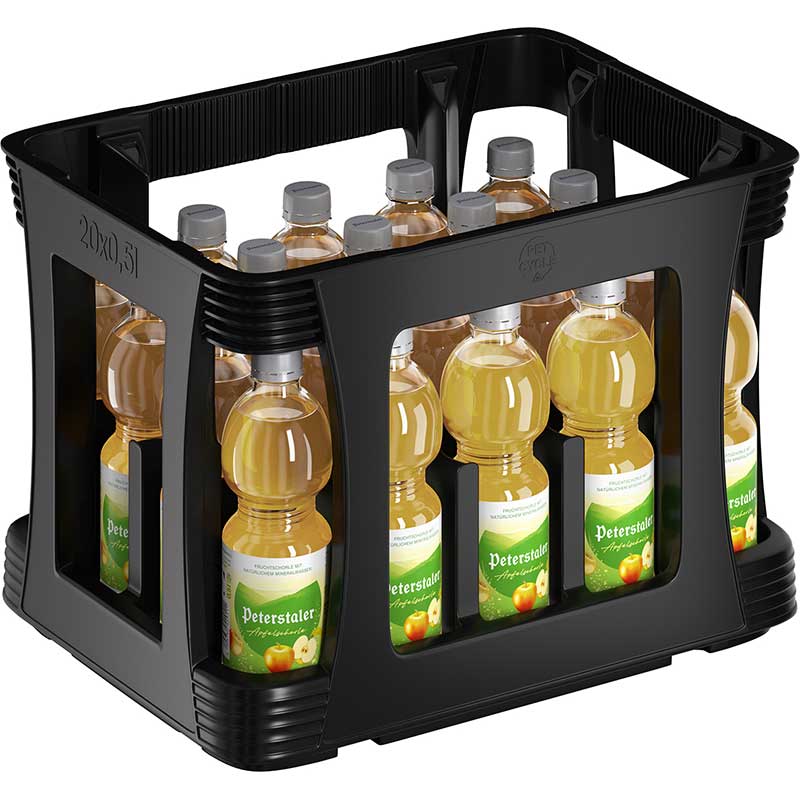Prickelnd fruchtige Durstlöscher mit mindestens 50 Prozent Fruchtgehalt und dem natürlichen Mineralwasser des Schwarzwaldes – 20 Flaschen mit 0,5 Liter (PET) – Pfand netto 5,46 Euro