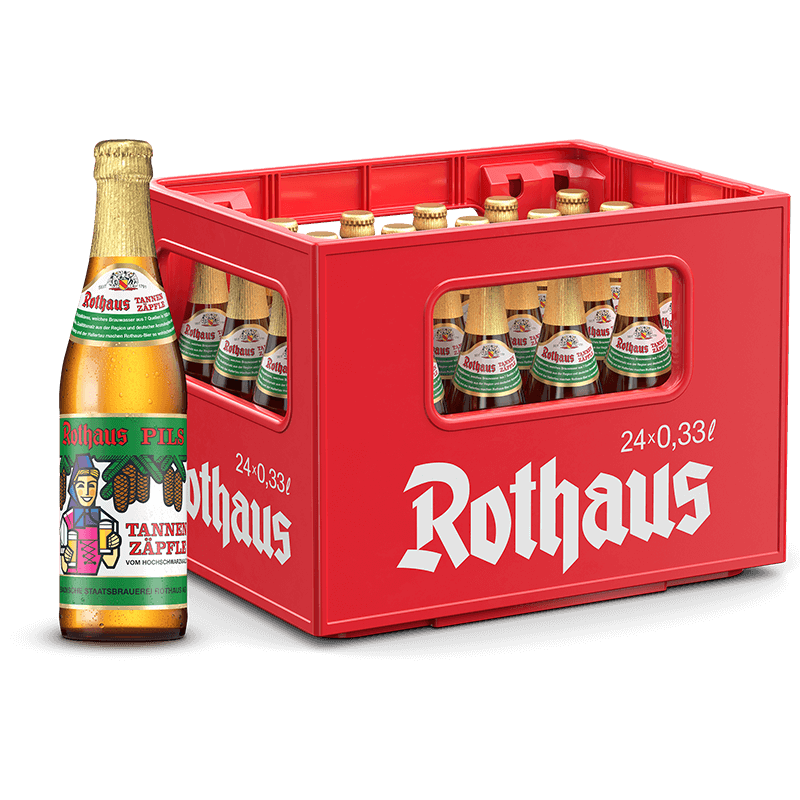 Der beste Aromahopfen aus Tettnang und der Hallertau, heimisches Malz aus Sommergerste und reinstes Quellwasser aus dem Hochschwarzwald verleihen jedem Rothaus Pils Tannenzäpfle seinen einzigartig würzigen und frischen Geschmack – 24 Flaschen mit 0,33 Liter (Glas) – Pfand netto 2,87 Euro